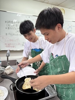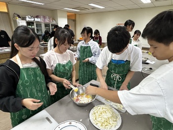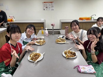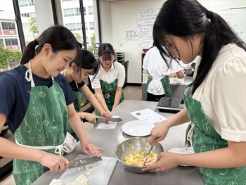 クッキング部はグループごとにテーマを決め、食文化について調べ学習をし、調理実習を行っています。