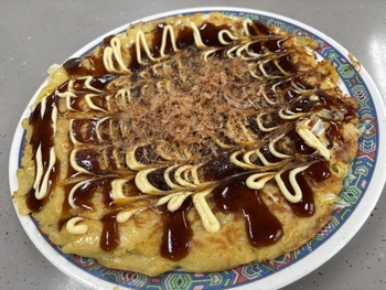 キャベツをたくさん使うレシピだったため、ふわふわでヘルシーな仕上がりになりました。トッピングはソース、マヨネーズ、カツオ節を使い、きれいに盛り付けることができました。シンガポールではラーメンやたこ焼きは人気がありますが、お好み焼きはまだあまり知名度が高くありません。