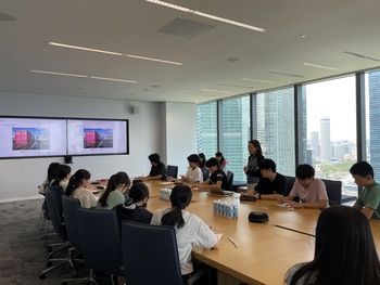 その後の質疑応答セッションでは、現地スタッフとして活躍されているWong様や、日本から出向されている藤田様も加わってくださりました。生徒たちが事前に提出した質問に対し、ご自身のキャリアパスを交えながら、時に英語を織り交ぜて丁寧にお答えいただきました。最後には職場見学もさせていただき、グローバル企業の最前線で働く自分たちの将来を、より具体的にイメージすることができました。