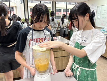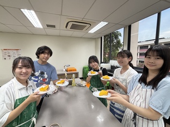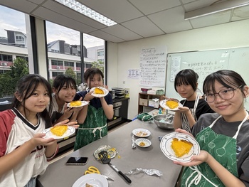 まず、パンプキンタルトを作る前に、ハロウィンの歴史について調べ学習を行いました。ハロウィンは、古代ケルト人の「サウィン祭」に由来し、秋の収穫を祝うとともに、霊的な世界とのつながりを意識する祭りでした。また、ジャック・オ・ランタンはアイルランドの昔話で、ジャックが悪魔を2度もだまし、死後彼は天国と地獄から受け入れを拒否され、天国と地獄のはざまを永久にさまようジャックに、悪魔が情けをかけ、かぼちゃのランタンと、明りを灯すための燃えさしを与えたことが起源ということを学びました。タルトを焼くのにかかる時間がとても長く、時間に追われながらの作業でしたが、かぼちゃの濃厚な味わいがとてもおいしいパンプキンタルトを作ることができました。