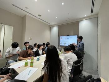企業訪問は、3名の社員の方による講演から始まりました。講演では、アマゾンが掲げる「地球上で最もお客様中心の企業になる」という企業理念や、挑戦と学びを重視する社内文化についてお話を伺いました。また、それぞれの社員の方々の仕事内容や社内での役割、AWSに至るまでのキャリアパスも紹介され、高校生に向けたキャリア形成のアドバイスも交えながら、多様な働き方と成長の可能性について考える貴重な機会となりました。