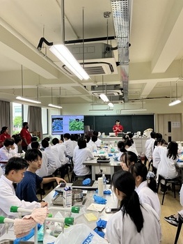 2025年11月21日(金)、高校3年理系クラスの授業において、イビデン物産株式会社 のご協力のもと、代替肉「ビーガンシュリンプ」の仕組みを科学的に理解する実験ワークショップを実施しました。本プログラムは、講義から実験まですべて英語で進行され、生徒にとって国際的な視点で食と科学を学ぶ貴重な機会となりました。