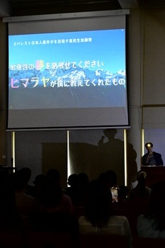 また、「なぜ人は旅に出るのか」「なぜ人は山に登るのか」という問いを通して、挑戦する意味や自分自身と向き合うことの大切さについて、自らの体験をもとに率直な思いを伝えました。そして最後には、「海抜ゼロから世界最高峰へ」という大きな夢を力強く語り、「より多くの人にネパールの魅力や文化、そこに暮らす人々の素晴らしさを知ってもらいたい」とのメッセージで締めくくりました。