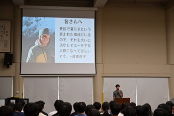 2月20日、本校2年C組の加藤啓さんによる特別講演会「加藤啓の夢を語らせてください ― ヒマラヤが僕に教えてくれたもの」を開催いたしました。