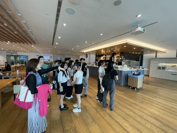 その後の質疑応答セッションでは、現地スタッフとして活躍されているWong様や、日本から出向されている藤田様も加わってくださりました。生徒たちが事前に提出した質問に対し、ご自身のキャリアパスを交えながら、時に英語を織り交ぜて丁寧にお答えいただきました。最後には職場見学もさせていただき、グローバル企業の最前線で働く自分たちの将来を、より具体的にイメージすることができました。