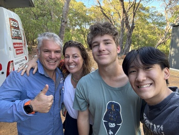 ホテルで朝食をとった後、ホームステイ先であるバンバリーとバッセルトンへバスで移動しました。集合場所では、生徒たちはやや緊張した様子を見せていましたが、ホストファミリーの温かい出迎えに、次第に笑顔が見られるようになりました。