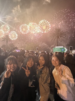 その後、宿泊先のホテルへ移動し、ビュッフェ形式の夕食を楽しみました。この日はオーストラリアデーにあたり、パース市内では盛大な花火大会が開催されていました。間近で打ち上がる花火の迫力に、生徒たちは大いに盛り上がり、旅の初日を華やかに締めくくりました。