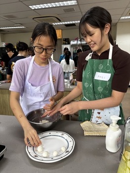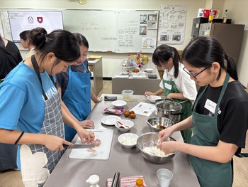 日本の食文化の魅力を発信するとともに、シンガポールのご家庭でも気軽に和食を作っていただくことを目的として行いました。メニューは「親子丼」と「みたらし団子」です。親子丼では、鶏肉(親)と卵(子)を使うことから名付けられた料理であるという由来も紹介し、日本ならではの食文化や言葉の面白さについても紹介しました。みたらし団子は日本の伝統的な和菓子ですが、今回はシンガポール現地で手に入る glutinous rice(もち米粉)と豆腐を使って簡単に作れるレシピを紹介しました。身近な材料で和菓子が作れることに、参加した現地校の生徒たちも興味津々の様子でした。当日は英語と日本語を交えながら交流を楽しみ、協力して調理を進めました。