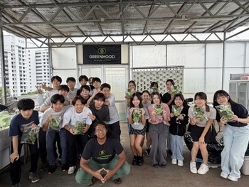 2年生20名がUrban Farmの施設見学を行いました。Urban Farmは「都市農業」と訳され、都市部やその近郊で食料を生産する活動を指します。今回訪問した施設はHDBの屋上にあり、様々な野菜や植物が栽培されているのが特徴です。