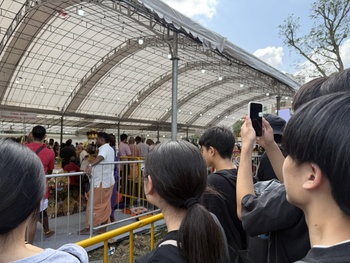 多くの信者が集まる熱気に包まれ、生徒たちは驚きの表情を浮かべながら、身体に針を刺し、行進する信者の姿を見学しました。シンガポールならではの貴重な体験を通じて、インド文化について学びを深めるとても良い機会となりました。