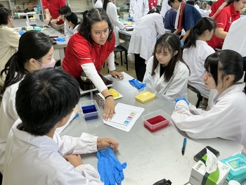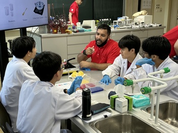2025年11月21日(金)、高校3年理系クラスの授業において、イビデン物産株式会社 のご協力のもと、代替肉「ビーガンシュリンプ」の仕組みを科学的に理解する実験ワークショップを実施しました。本プログラムは、講義から実験まですべて英語で進行され、生徒にとって国際的な視点で食と科学を学ぶ貴重な機会となりました。