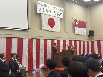 入学式では世界各地から集まった保護者の皆様に見守られるなか、新入生一人ひとりが呼名され、本校の生徒として認証されました。校長式辞では、多様な人々が共に暮らすシンガポールで学ぶ意義や、本校における多様な学びの価値について語られ、充実した3年間を実現するために、自ら問いを立て、探究し続けることの重要性が伝えられました。