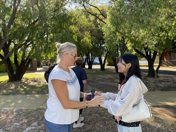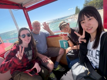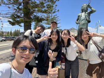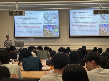 その後、再びパース市内へ戻り、西オーストラリア州立大学を訪問しました。広々とした芝生の上で、現地の学生のようにピクニックランチを楽しんだ後、「オーストラリアの若者と多様性」をテーマとした英語による講義を受講しました。時事英語の授業で扱ってきた、16歳未満のソーシャルメディア利用制限の話題にも触れていただき、生徒たちは内容を理解しながら積極的に質問をする姿が見られ、有意義な大学訪問となりました。