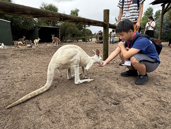 早朝の便でシンガポールを出発し、パース空港に到着しました。入国手続きを終えた後、最初の訪問地であるカバシャム動物園へ向かいました。園内では、コアラやカンガルー、ウォンバットなどオーストラリアを代表する動物たちと記念撮影を行い、カンガルーに餌をあげる貴重な体験もしました。