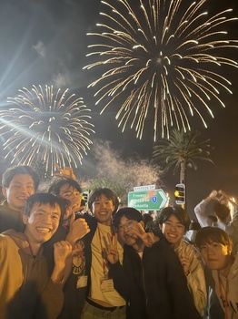 その後、宿泊先のホテルへ移動し、ビュッフェ形式の夕食を楽しみました。この日はオーストラリアデーにあたり、パース市内では盛大な花火大会が開催されていました。間近で打ち上がる花火の迫力に、生徒たちは大いに盛り上がり、旅の初日を華やかに締めくくりました。