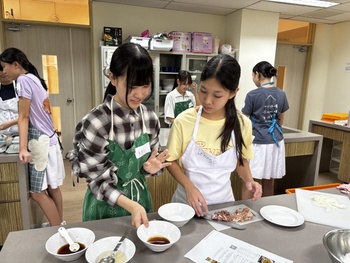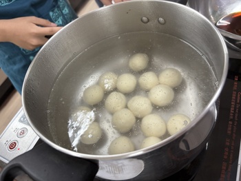 日本の食文化の魅力を発信するとともに、シンガポールのご家庭でも気軽に和食を作っていただくことを目的として行いました。メニューは「親子丼」と「みたらし団子」です。親子丼では、鶏肉(親)と卵(子)を使うことから名付けられた料理であるという由来も紹介し、日本ならではの食文化や言葉の面白さについても紹介しました。みたらし団子は日本の伝統的な和菓子ですが、今回はシンガポール現地で手に入る glutinous rice(もち米粉)と豆腐を使って簡単に作れるレシピを紹介しました。身近な材料で和菓子が作れることに、参加した現地校の生徒たちも興味津々の様子でした。当日は英語と日本語を交えながら交流を楽しみ、協力して調理を進めました。
